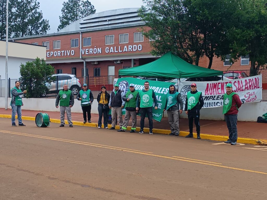 Durante la mañana de este jueves, la Asociación de Trabajadores del Estado (ATE) llevó adelante una jornada de protesta frente al Polideportivo Municipal de San Vicente, donde el intendente Fabián Rodríguez destina grandes recursos municipales, maquinarias, camiones, herramientas y personal para los preparativos de la Fiesta Nacional de la Madera.